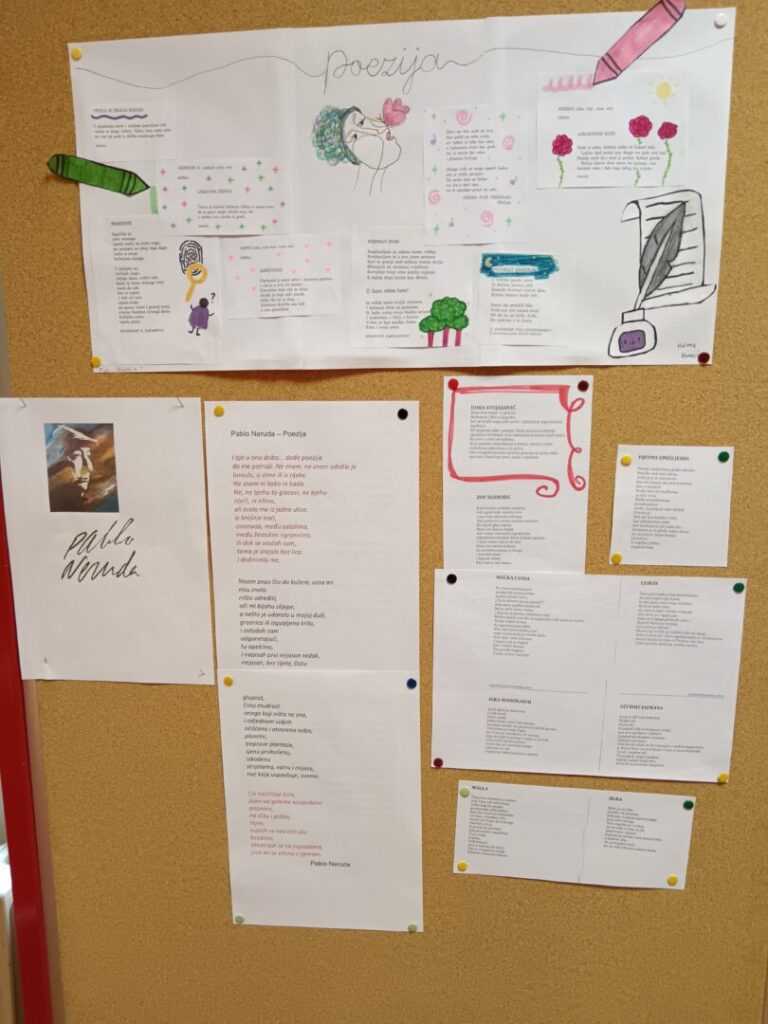 Dora je poželjela da njezine pjesme nađu svoj dom u našoj knjižnici. Prihvatili smo s veseljem knjigu kao poklon i napravili prigodni plakat na kojem smo, uz velikog Pabla Nerudu i njegovu čuvenu pjesmu Poezija postavili i Dorine pjesme. Male knjižničarke su za tu prigodu izradile plakat koji su posvetile poeziji, povodom Svjetskog dana poezije.