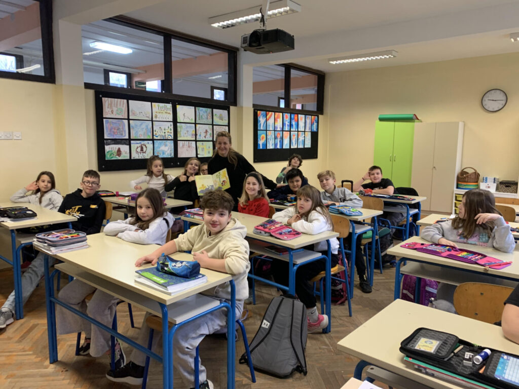 U posljednjih tjedan dana knjižničarka čita u prvim razredima. Danas, 27.1. čitamo slikovnicu Uljuđeni vuk, nakon Vuka koji je ispao iz priče, u 1.b razredu.