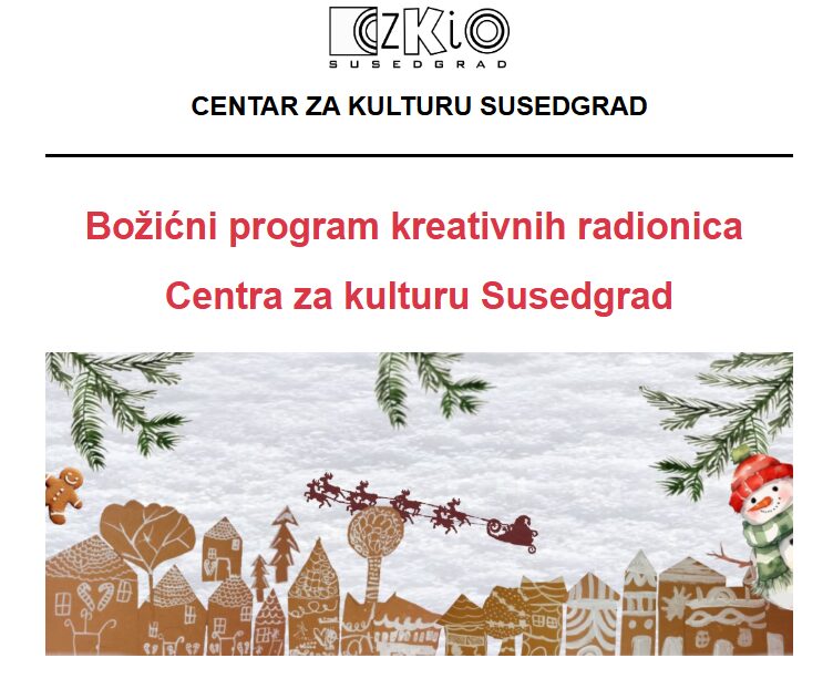| Centar za kulturu Susedgrad s veseljem vas poziva na božićne priredbe koje ujedno predstavljaju polugodišnji prikaz rada polaznika kreativnih radionica Centra. |