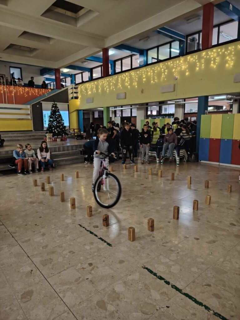 Tijekom dva velika odmora u prizemlju škole održano je natjecanje u upravljanju biciklom, odvojeno za djevojčice i dječake. Pobjednici u obje kategorije osvojili su malu pizzu.