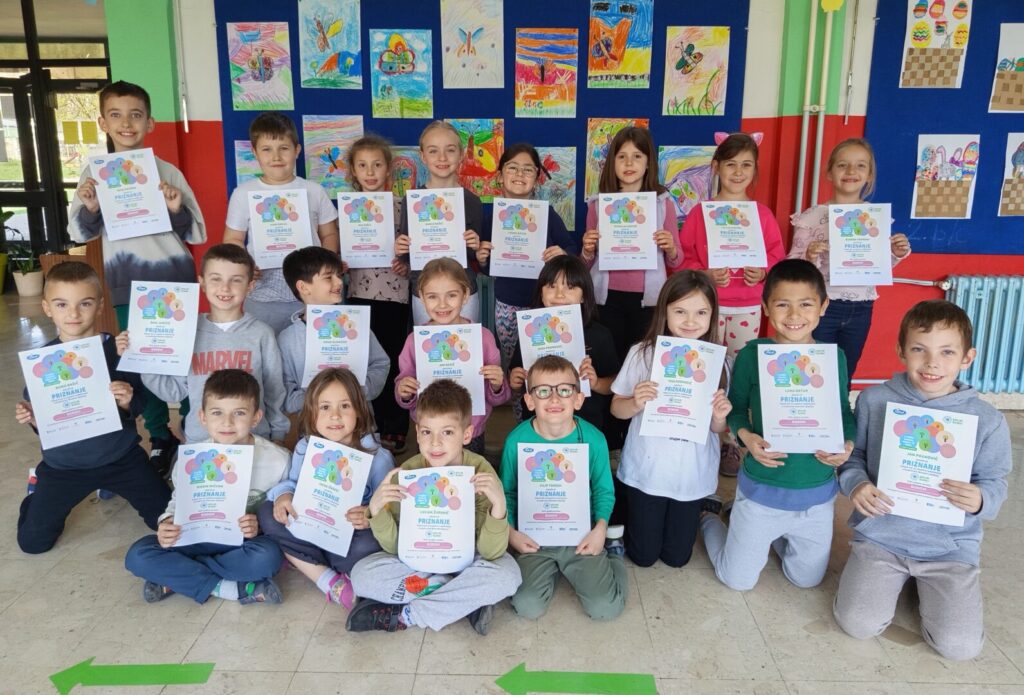 Učenici 1. b razreda u produženom boravku osmislili su likovne radove na zadanu temu. Tako smo i mi s veseljem doprinijeli da naša zemlja ima više drveća, a time i više zelenila.
