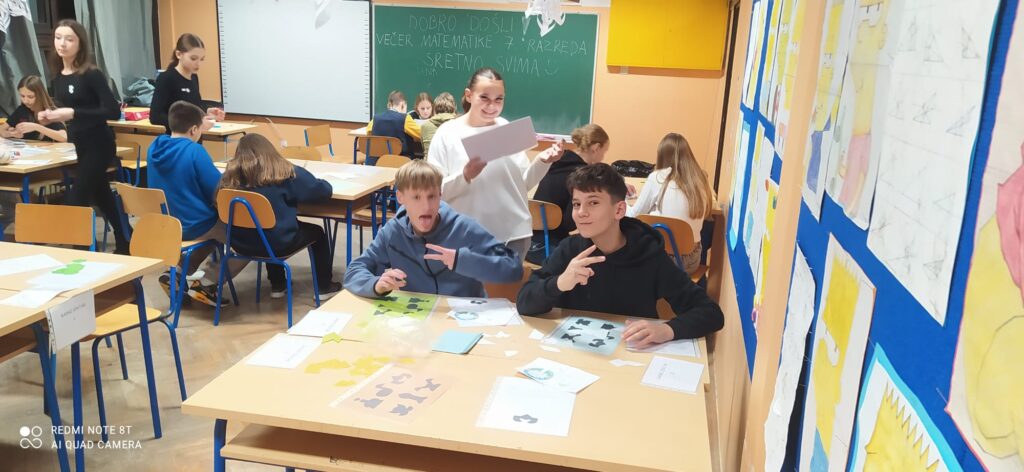 Sama večer protekla je u zabavnom i natjecateljskom duhu. Kod učenika se kroz radionice i igre primjerene njihovom uzrastu razbija predrasuda da je matematika samo skup teških zadataka i pravila. Želja je pokazati kako je ona zabavna disciplina koja potiče logičko razmišljanje, rješavanje problema i timski rad.